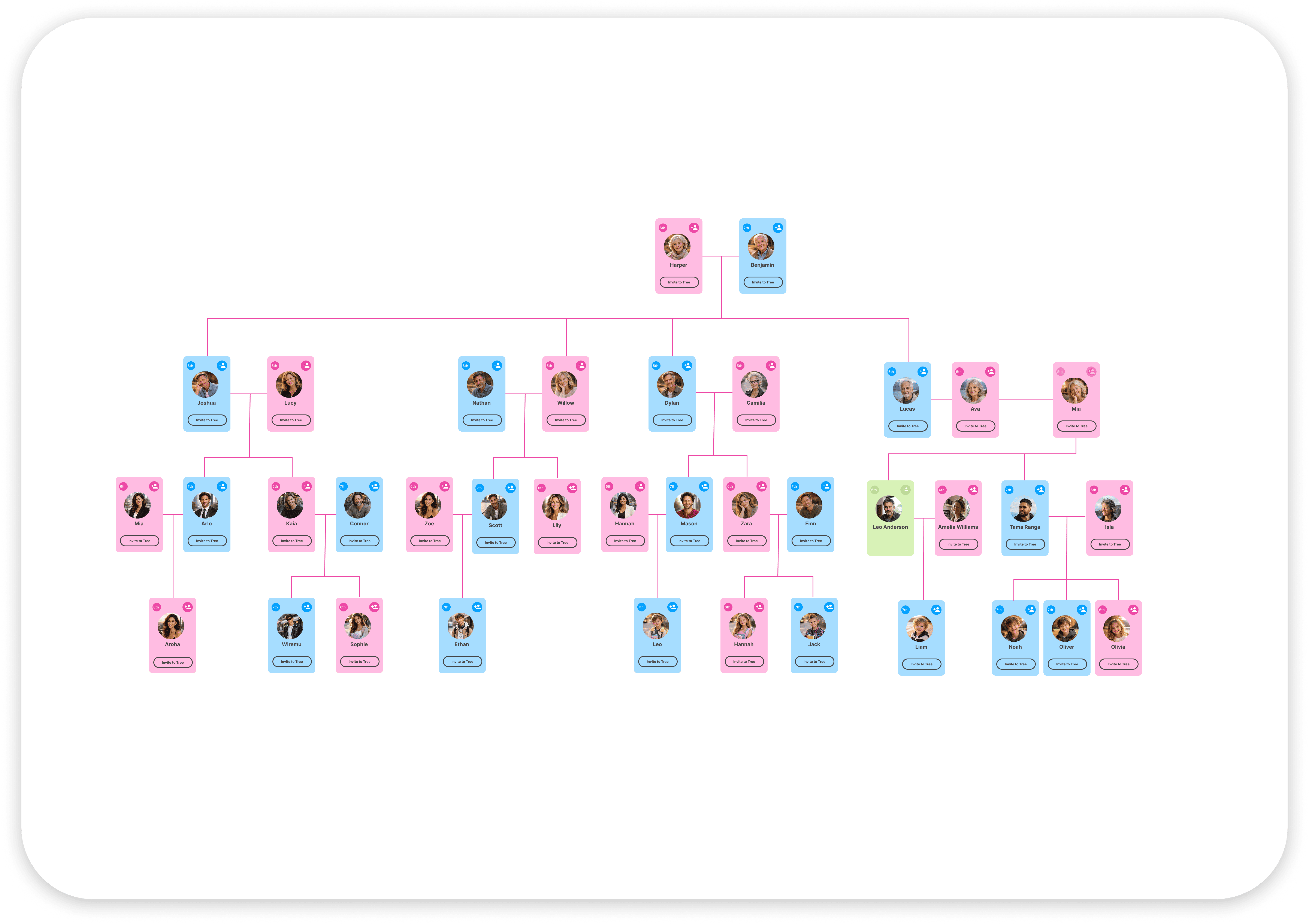 Start with yourself and close relatives. Our intuitive builder helps you create your first branches in minutes.